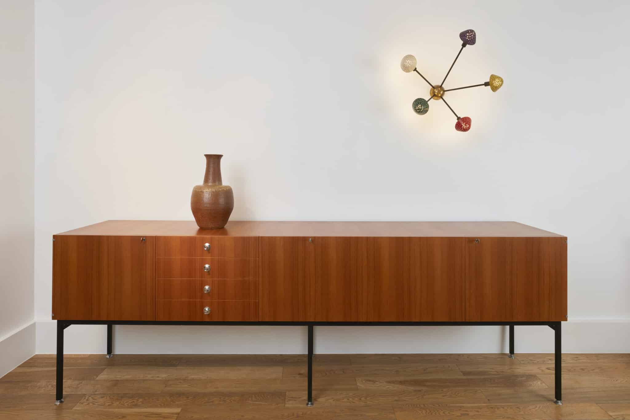 Métal laqué, métal chromé et teck