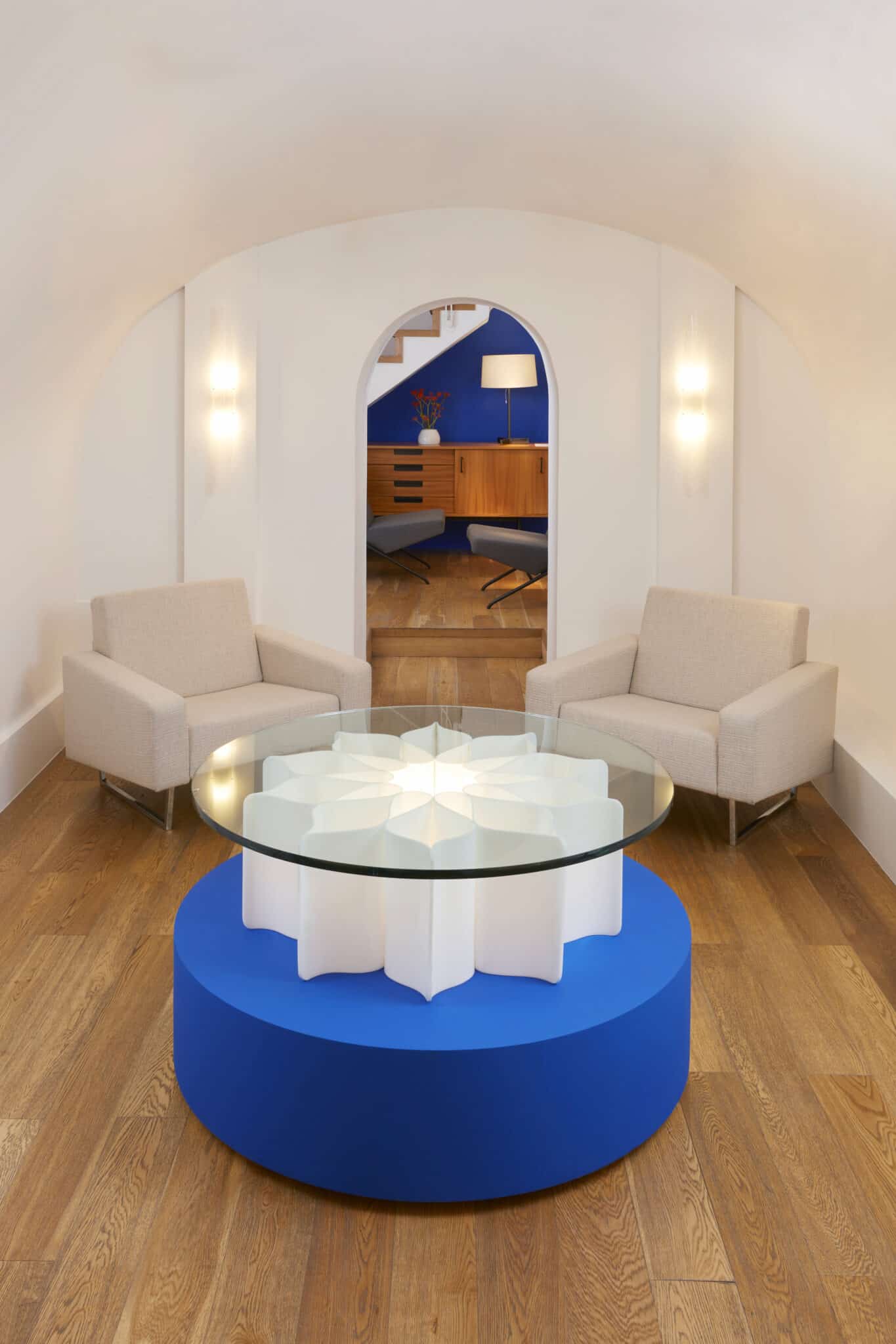 Good original condition, new foam, new Pia fabric by Pierre Frey