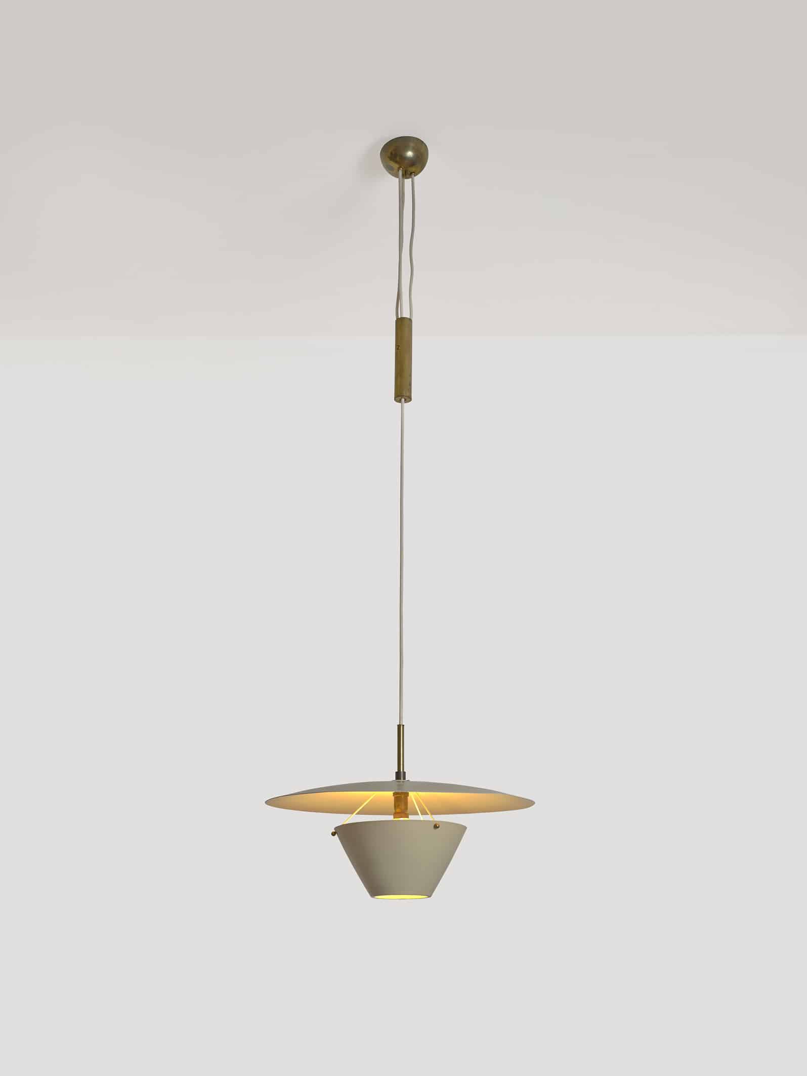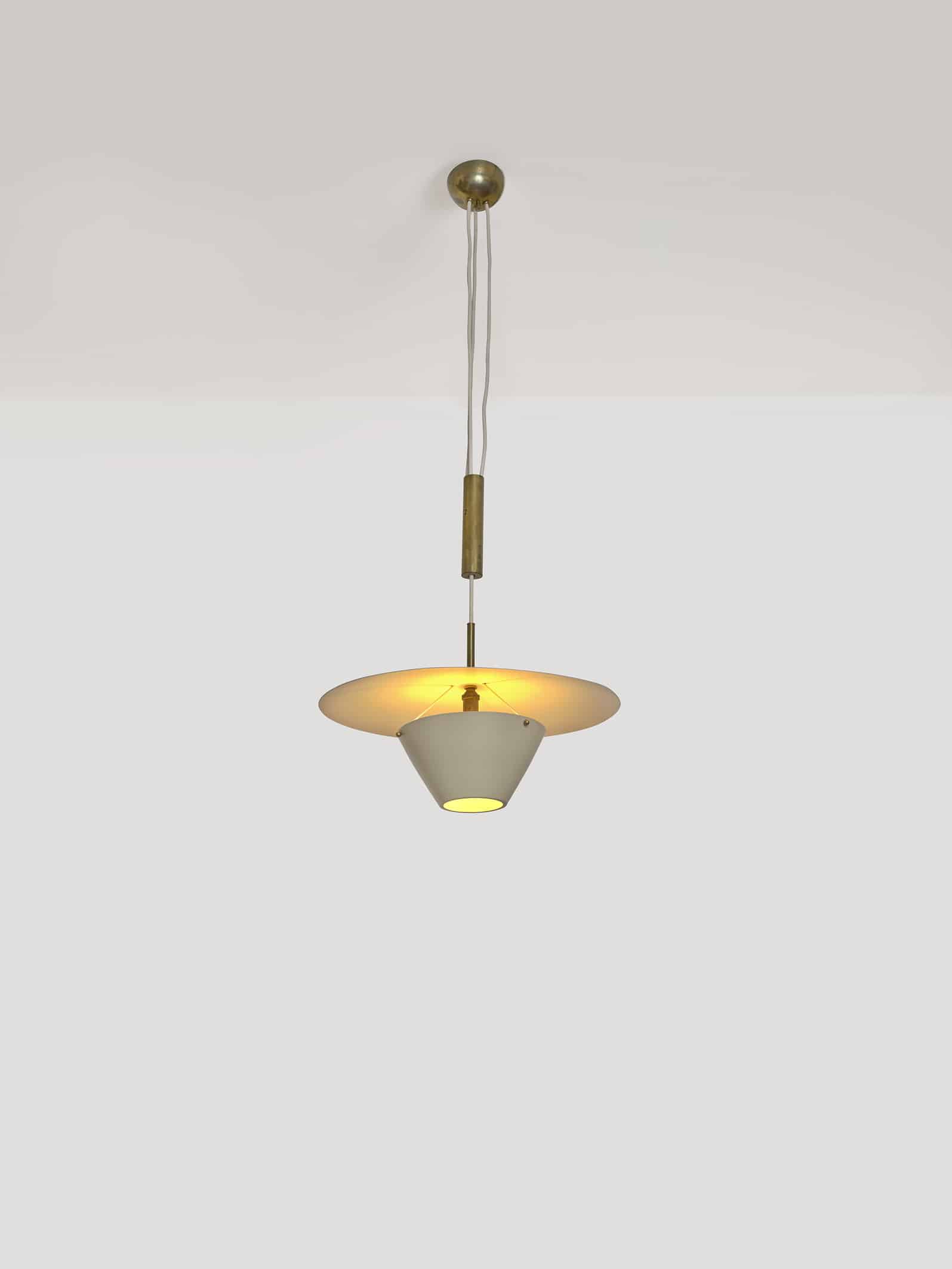Brass, white lacquered metal and glass