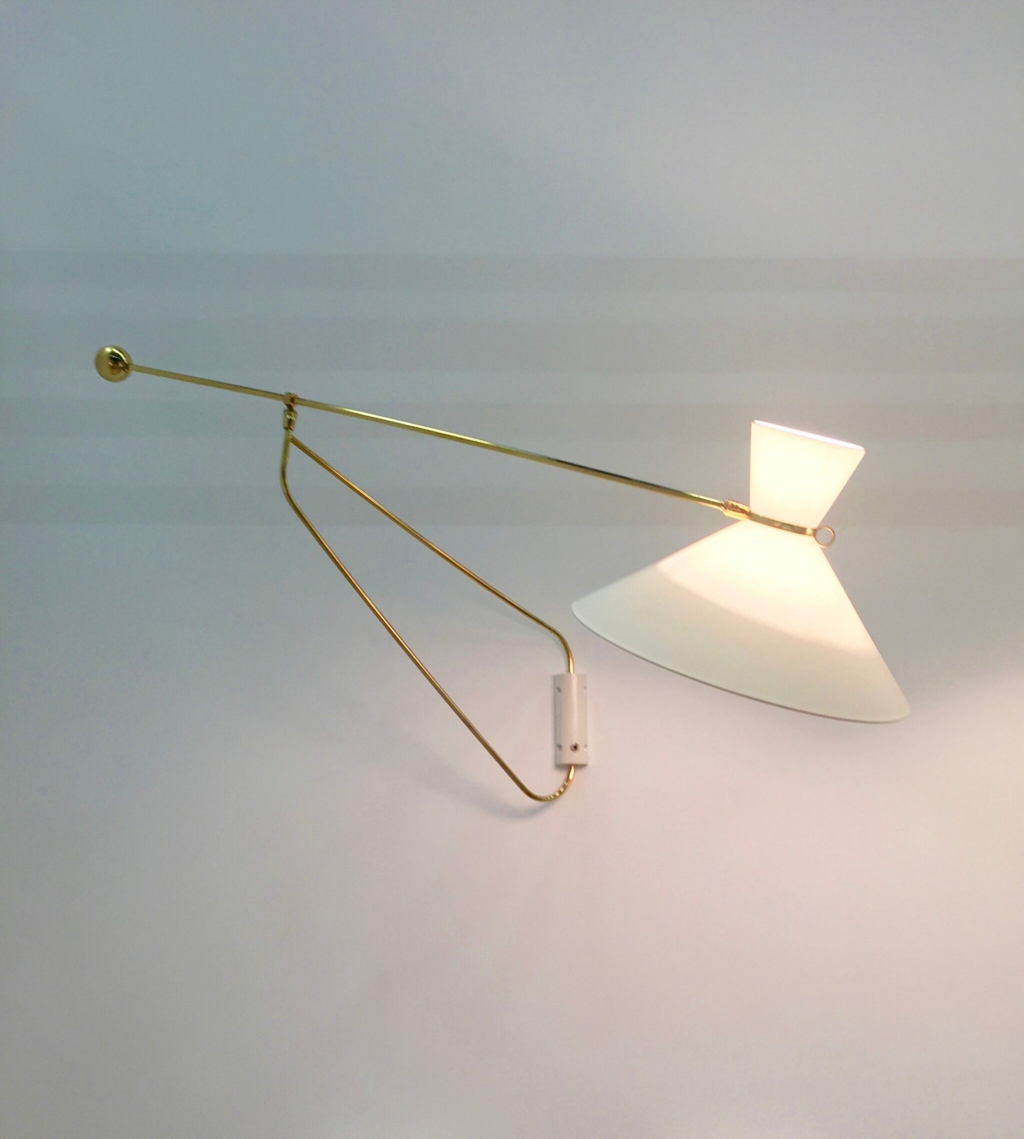 Brass, lacquered aluminium and fabric lampshade