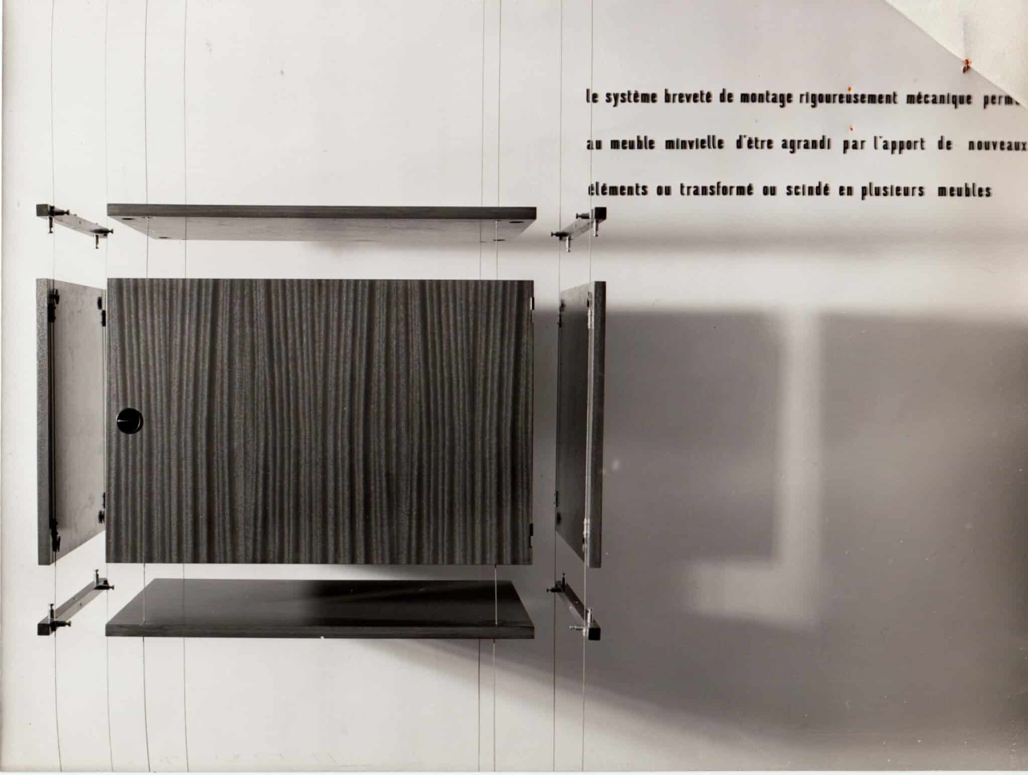 The trio also takes in charge the interior design of several places, including the offices of EDF in Compiegne in 1955, and the interior design of the apartment of Hugues Steiner in Neuilly. Apart from their interior architectural projects, it is in the field of series furniture production they will endeavor to evolve by working with the best technical services providers, Airborne and Steiner for the seats, Minvielle and Cabanne for the furniture, Disderot for the lights. We owe them in particular a complete collection of seats with a standard seat and adaptable feet as well as the very first juxtapose modular set also named “Minvielle element”.