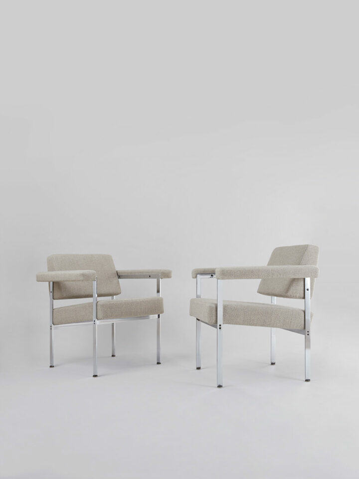 1959: He is aesthetics director and creates the complete collection: furniture, seats, accessories for the company D.M.I. and participates in the realisation of all the projects handled by this firm.