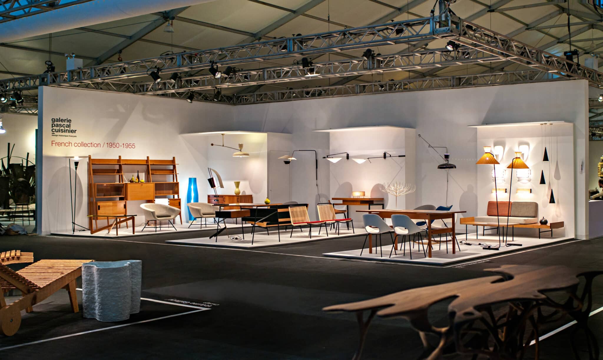 Le stand pensé par Pascal Cuisinier était conçu comme une véritable expositions à visée pédagogique afin de sensibiliser les collectionneurs au design français des années 1951-1961.