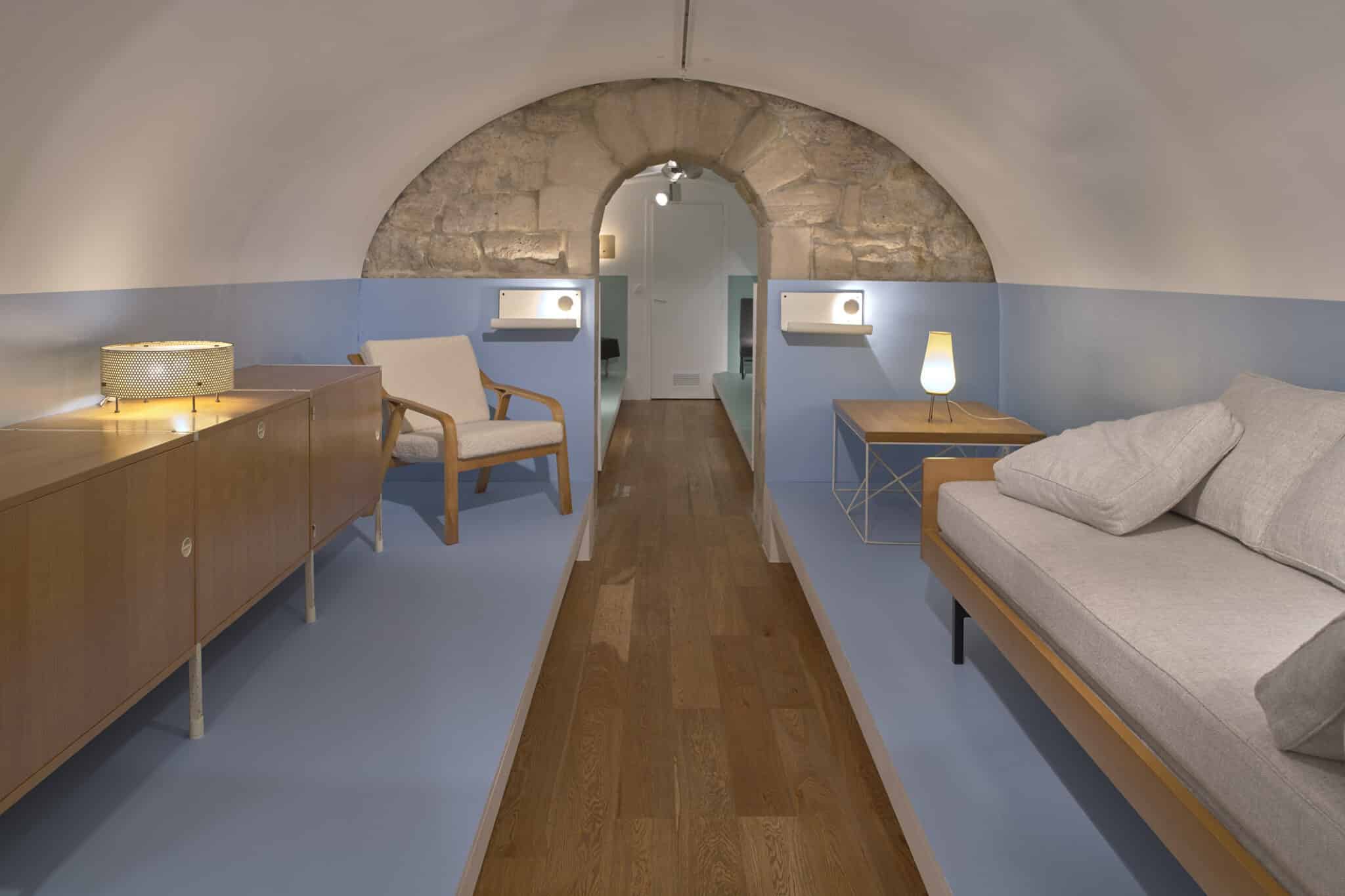 La carrière et l’intérêt de Pierre Guariche ne résident pas uniquement dans son travail de designer. Il fut avant tout, un très grand architecte d’intérieur. Comme tel, bien sur, il est peu représenté dans le monde du marché, celui de la recherche historique, des musées et des expositions, celui de la presse, des galeries et des collectionneurs… Il fait, pourtant, partie intégrante de toutes ces collections, publiques et privées au titre de designer. En effet, à part grâce à des livres -et celui sur l’architecture intérieure de Guariche reste à faire- il n’est malheureusement pas possible d’accéder au travail des architectes d’intérieur. Beaucoup de leurs œuvres n’ont pas été, ou mal photographiées, elles n’existent plus car moins pérennes que l’architecture. Les appartements ne sont pas accessibles et ont été souvent modifiés etc. De plus, pour comprendre et pour médiatiser ces recherches en matière d’espace, de distribution, de volume, de lumière, de couleur, de matériaux, il faut passer par des plans et des analyses plus complexes que de simples images. On ne retient que quelques photographies, les plus accrocheuses, souvent celles en couleur et pas toujours les plus pertinentes…