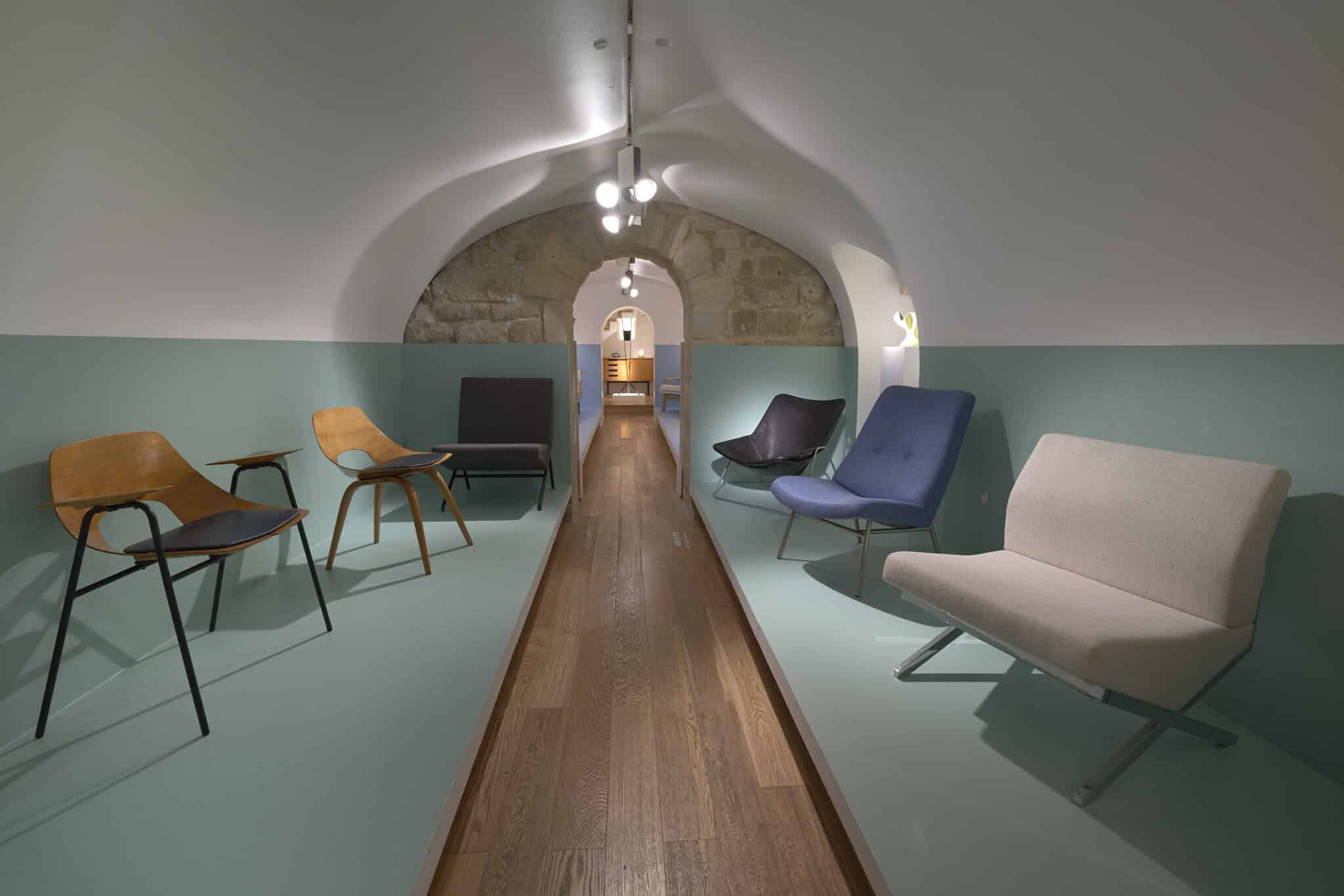 Nous ne pouvions faire l’impasse sur un des moments les plus productifs de la carrière de ce créateur, son association avec Michel Mortier et Joseph André Motte au sein de l’A.R.P de 1954 à 1957. La galerie leur avait déjà consacré une exposition monographique. Dans cette exposition, une salle entière présente quelques pièces rares comme une banquette transformable, un très beau fauteuil en bois lamellé-collé dont les ressorts sont apparents ou le seul exemplaire connu, de leur table transformable.