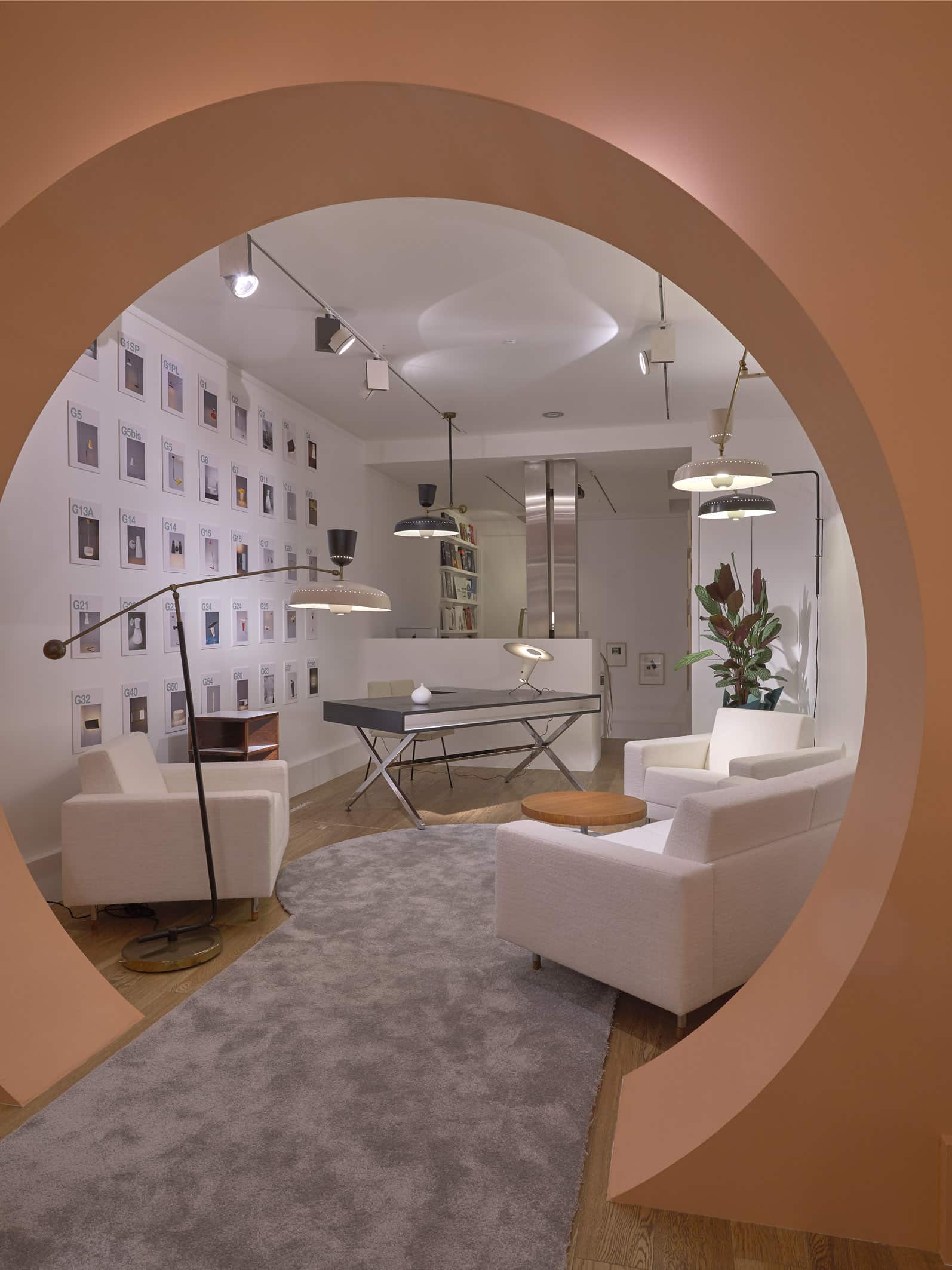 La scénographie se veut minimale et contemporaine mais, elle évoque certaines formes utilisées par Guariche autant que le soin qu’il avait dans la mise en scène des objets et des espaces. On se souvient qu’il avait remporté le prix de la plus belle boutique de Paris avec l’aménagement d’une boutique de minéralogie sur les champs Elysées !